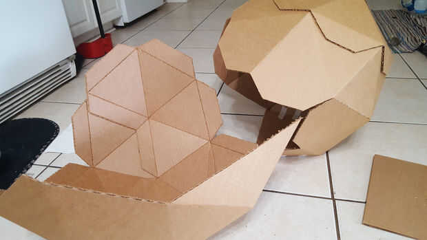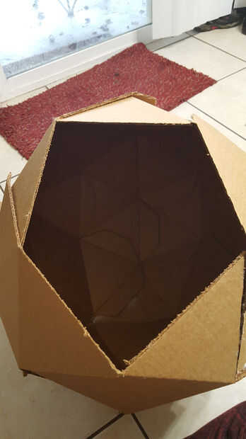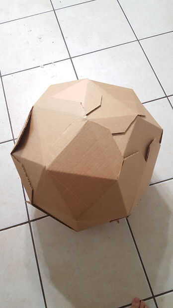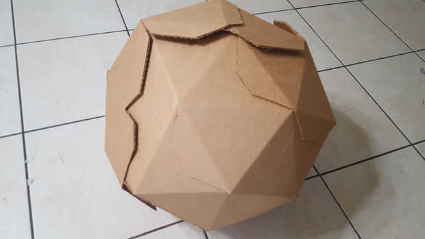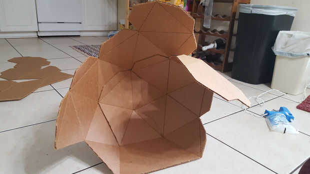 Seguir haciendolo hasta que comience a convertirse en una forma sólida de 3D. Asegúrese de cortar la base forma de Pentágono en el centro porque es donde la cabeza va a ir a través.