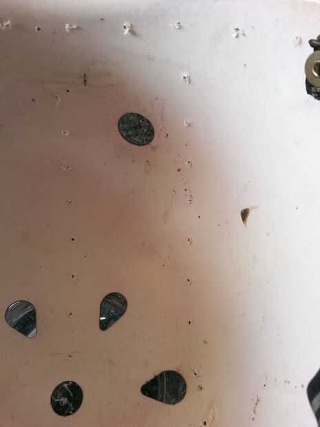 Todos estos orificios de perforación izquierda toda clase de rebabas en el interior del casco - utilice un cuchillo para raspar hacia fuera, de lo contrario ellos se aflojará en momentos inoportunos, más adelante.