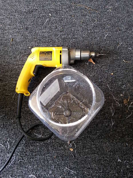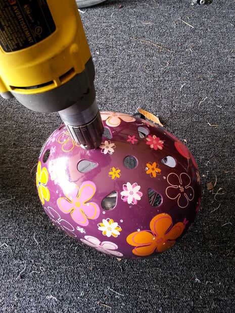 Una vez que está marcada su patrón de agujeros, perforar utilizando un 5/32nds bit sosteniendo el casco en el contenedor de pretzel. Esto hace mucho más fácil de perforar los agujeros de perímetro ya que la cáscara no flexión y deslizamiento y ayudará a evitar que la perforación en la mano. (He visto hacerlo. No era buena.) Asimismo, mantenga las correas de la manera - son bastante difíciles y si Haz ligados en el bit será sin diversión.