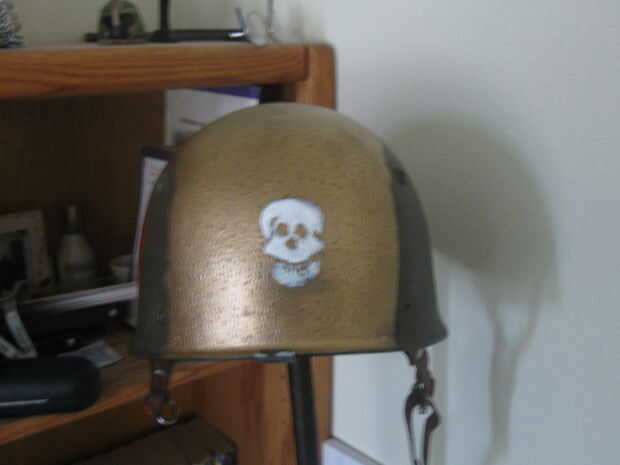 Después de la raya de oro, el casco es necesario una mirada más personalizada, como si el soldado había agregado una parte de sí mismo a él. Así que elegí unos de mis símbolos define para adornar la cabeza. Un cráneo (vencer a piratas ninjas), un león rampante (soy describe a menudo como una persona de corazón de León), una espada (me encanta ese símbolo y es connotaciones) y corazón (tengo un lado más suave, una parte suave).