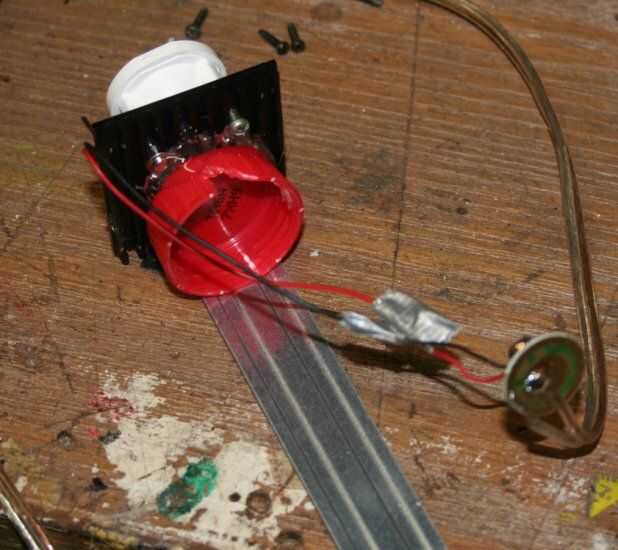 Tomar la tapa y fíjela con tornillos. también toma de las tapas de Coca Cola y corte una muesca pequeña en ella. a continuación tomar la tapa y utilice el derretimiento caliente y fije a la parte posterior del disipador de calor.