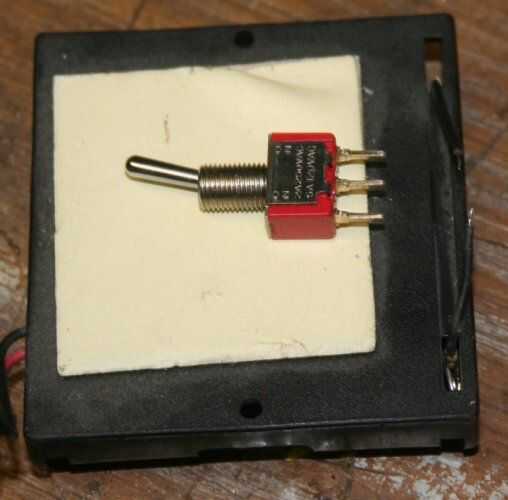 tomar el paquete de baterías y que llegué tenía un alambre connetor, corte que ponga el interruptor en su lugar. entonces usé derretimiento caliente para mantener en su lugar.