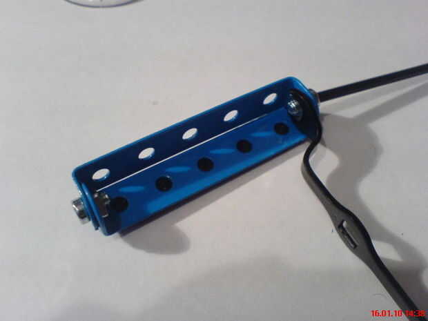Paso 2: en los extremos del perno juntos las dos tiras de Mecano