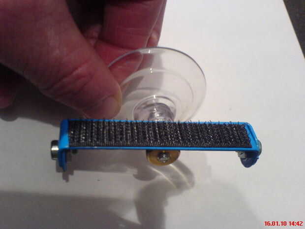 puse una tira de velcro grueso en el Monte y el velcro suave en la parte posterior de la cámara (una cuestión de gusto personal). Usted puede considerar el uso de 3M en su lugar.