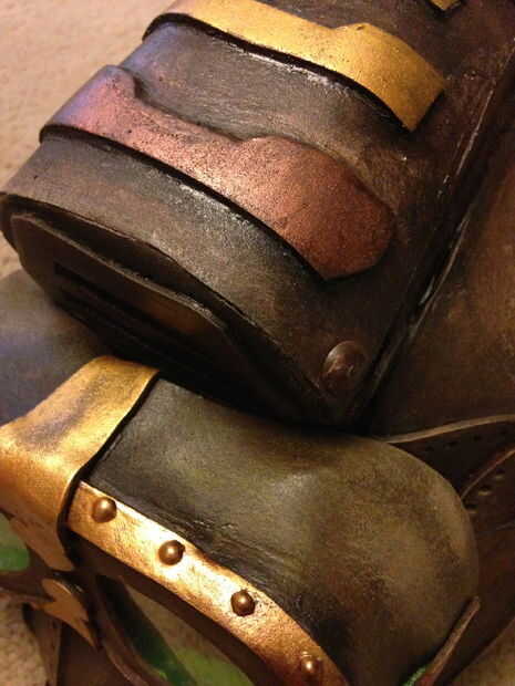 Yo realmente lo quería pop... por lo que algunos de los detalles pintados con pinturas metálicas para llevarlos realmente a cabo. Usted puede pintar tuyo sin embargo le gustaría. Después de todo lo que fue hecho, diluido algunos pintura acrílica negro y descuidadamente pintado sobre todo a continuación, limpiar el exceso con un trapo viejo para que sólo las partes que quería brillar mostraría a través y todo tenía un aspecto "envejecido y sucio". Este toque también saca las sombras y da la profundidad del casco! Una vez que esté seca, agregue un sellador spray final sobre todo para proteger tu trabajo de pintura y listo!