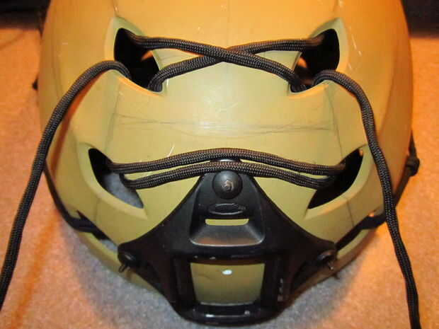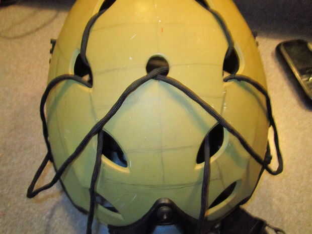 A partir de ahí, los orificios delantero superior (por encima de la montura NVG), cruzar a los agujeros una vez más y volver hacia arriba y fuera de los agujeros delanteros superiores. (Foto 6 y 7)