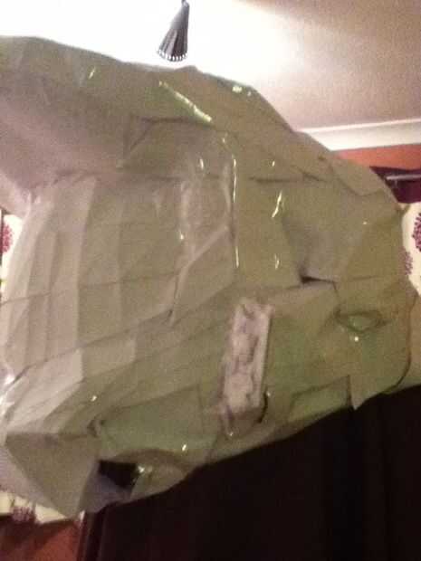 este es mi casco de cartón halo... sé prefieren pepakura, pero para algunas personas que no es un lujo otros tiene... así que decidí hacer uno de cartón... srry por la falta de instrucciones, no pensé hacerlo y instructable hasta que fue a finales...