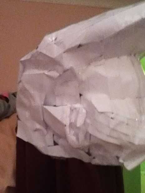 este es mi casco de cartón halo... sé prefieren pepakura, pero para algunas personas que no es un lujo otros tiene... así que decidí hacer uno de cartón... srry por la falta de instrucciones, no pensé hacerlo y instructable hasta que fue a finales...