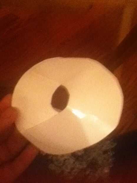 La parte superior de la TARDIS es como un cono de forma apenas utilice el soporte de la luz óptica de fibra para ayudarle! Utilice el laminado o cartón. Debe ser robusto. Poner las dos piezas cortadas y pegar loco. Asegúrese de que es una forma de cono. La parte superior de color negro