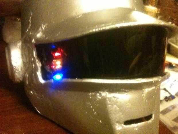 En Thomas casco sin embargo hemos utilizado un paquete de batería de luces de Navidad mini, simplemente graba cada bombilla en el interior de la visera en el casco y ocultó el cable pack dentro de su traje, todo lo que tiene que hacer para encender sus luces es mover de un tirón un interruptor en el paquete y parpadee o alojarte todavía. También puse dos luces en cada esquina del interior de la visera, también de la luz hasta anillos. He incluido un video debajo de las luces.