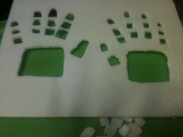 Para ambos conjuntos que cortar trozos de dedo y una parte de la parte superior de la mano de la espuma del arte, después de que envuelve cada una en cinta reflectante, oro para chico, plata de Thomas y caliente pegado cada pedazo en los guantes, asegúrese de que tiene algo entre el guante así su glye no filtra a través de los dedos y palmas conseguirán pegadas , Aprendí la manera dura, a pesar de que sé mejor.