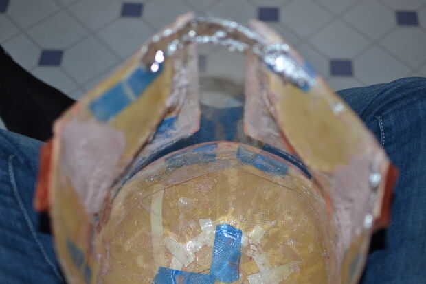 El interior del casco también fue cubierto con tela de fibra de vidrio para reforzar más.