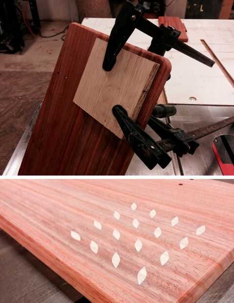 3. Corte la pieza de incrustación con Sierra de banda, y alisar la parte de bolsillo con lijadora de Palma