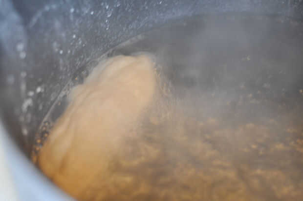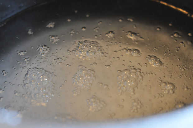 Poner una olla grande de agua a hervir, agregar el bicarbonato de sodio.