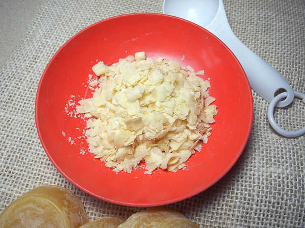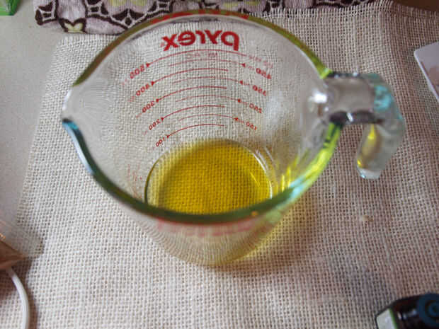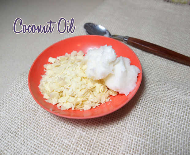 En este paso tienes que bajar tu vidrio taza u otro recipiente apto para microondas (a menos que planee usar la estufa para derretir todo). Usted primero necesitará rallar la cera de abejas y el lugar que en el envase. Tras esto, añadir el aceite de coco y otros aceite de su elección (yo usé de jojoba).