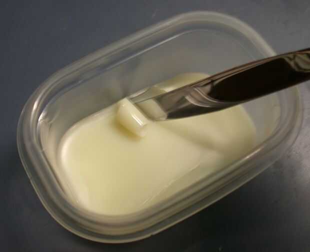 Después de algún tiempo de ablandamiento en la nevera, el aceite de oliva debe ser ahora una buena consistencia para untar.