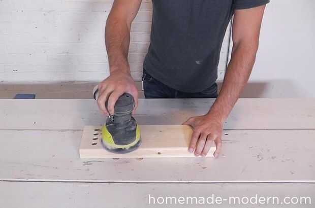 usé una lijadora orbital a la arena 2 x 6. Empecé con papel de lija grano 100 para redondear hacia abajo los bordes y luego acabado con grano 220.