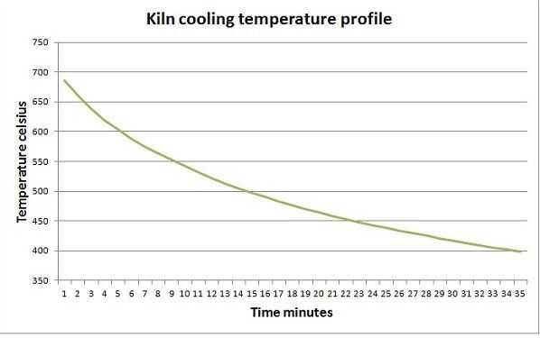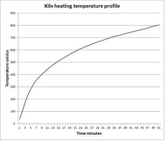 Una de las primeras cosas que hice fue ejecutar el horno a máxima potencia y registro de la temperatura en intervalos de un minuto hasta 820C mata la energía y medir la caída natural de la temperatura en intervalos de un minuto.