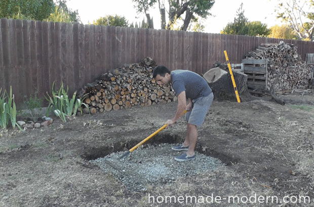 Extiende aproximadamente 3.5" de Quikrete 3/4 grava en el fondo del hoyo y rastrillado más plana posible antes de sellado hacia abajo.