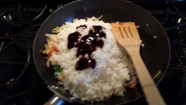 En este punto si el arroz parece que necesita más salsa, añadir un poco más en un momento hasta que tenga el aspecto deseado frito a él.