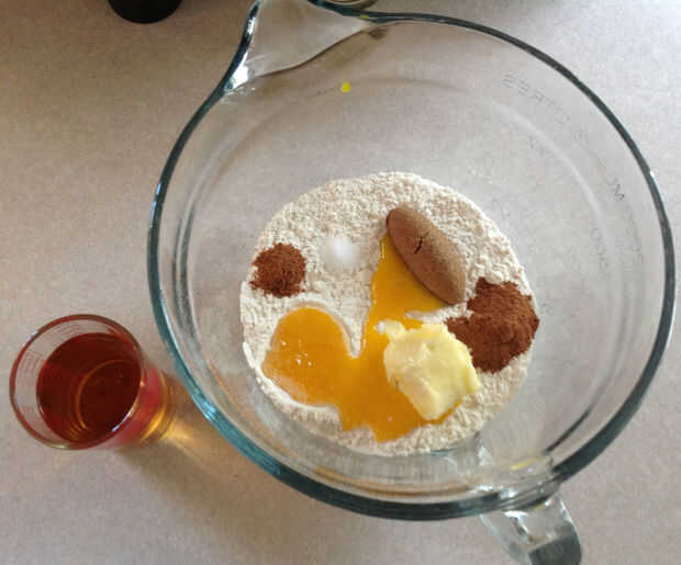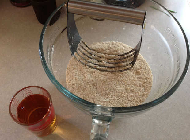 1. mezclar todo pero el Marsala en un recipiente con un cortador de pastelería hasta que es grumosa, se deben mezclar bien las yemas de huevo y mantequilla.