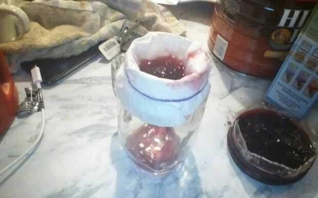 Filtrar el jugo de la pulpa. Anthocynin es el pigmento que se extrae durante este proceso.