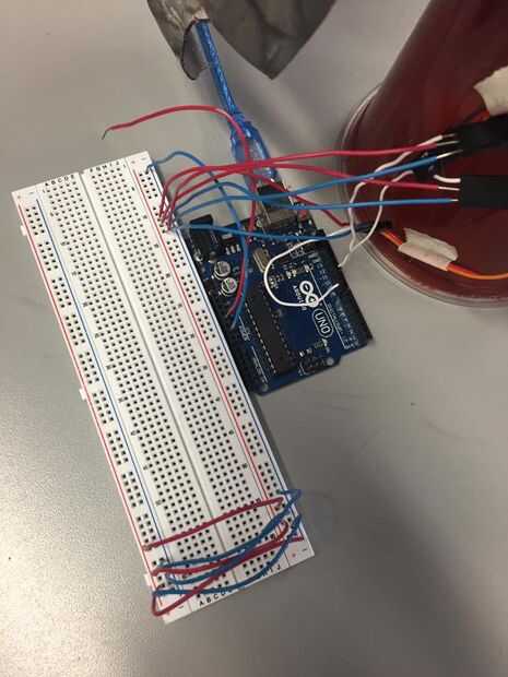 Conecta los tres servos a la tierra y a la corriente (5 voltios), luego conectas cada motor con su conector: