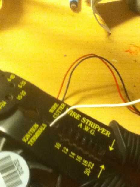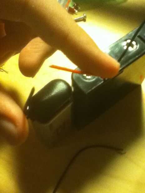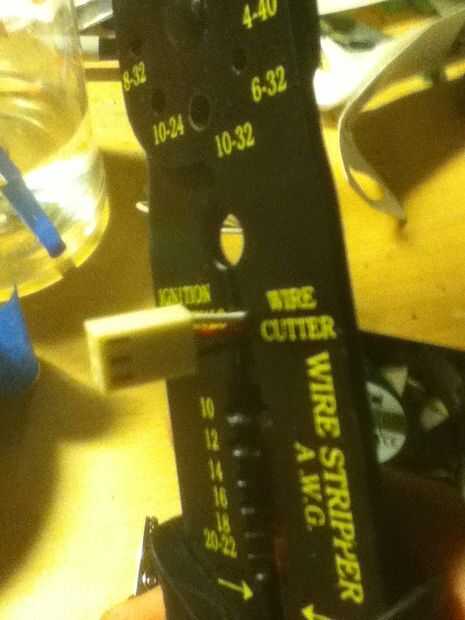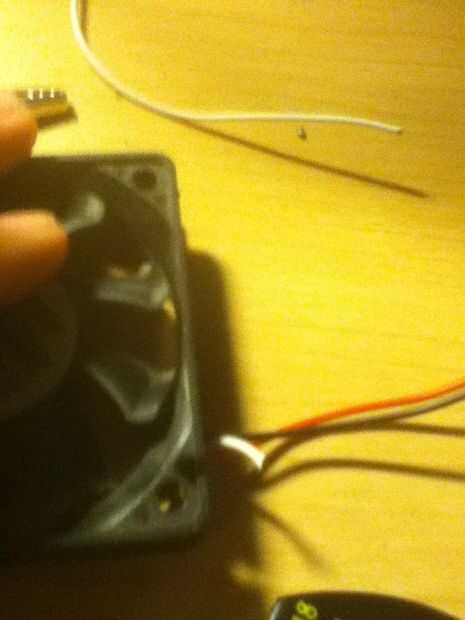 Corte el adaptador de plástico cosita en el extremo de los cables el ventilador como en la foto. Luego cortar el cable blanco para dejar sólo el rojo y negro como en la foto. Luego Pele los extremos del cable restante. Ahora acortar no cortar completamente el cable de 9v NEG uno pos 4 x cable del paquete de AA (mirar foto). Luego tira de los cables.