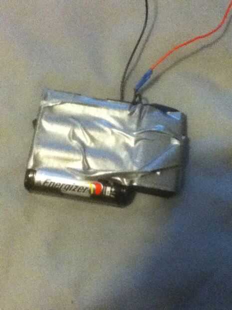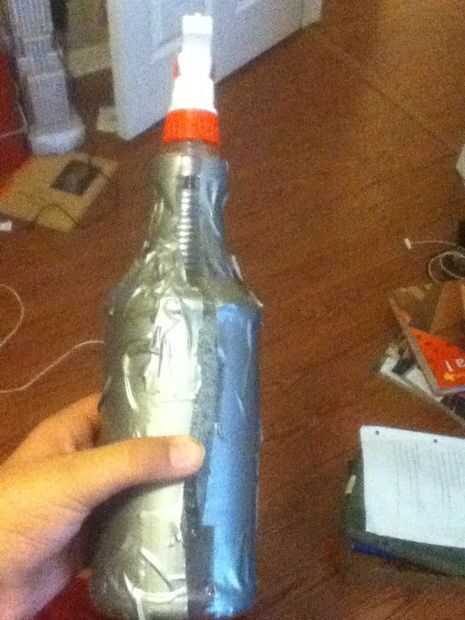 Tomar la cinta americana y cinta las pilas como se muestra en las fotos. Entonces el rap el atomizador completo en cinta. Dejar una abertura pequeña hacia abajo toda la longitud de la botella ver el interior para ver la cantidad de agua es left.then la cinta de la batería a la botella. Dependiendo de cuánto tiempo el cable determina la ubicación de la batería. Ahora con cinta hacia abajo todos los cables que están cubiertos excepto para el "interruptor" que se realiza mediante una pinza. Finalmente agregar el ventilador a la tapa caliente pegado a la posición deseada en la parte superior.