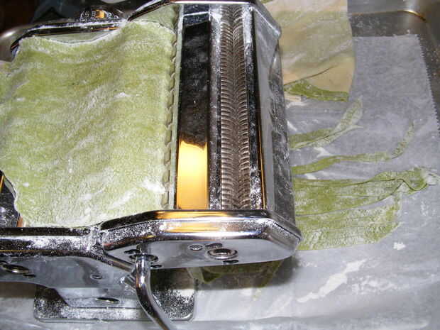 Después de que pase a través de las cuchillas, puede que necesite separar las hebras individuales de pasta. Pelar los hilos separados.