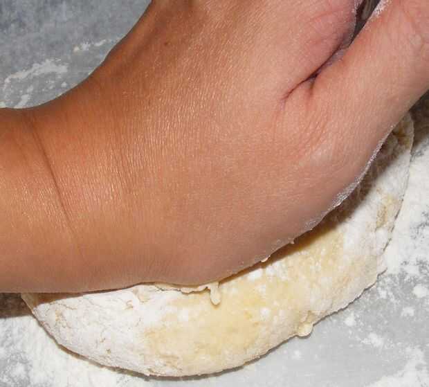 Seguir a amasar hasta sentir que la bola de masa es suave y elástico cuando se presiona y requiere no más harina seca para difundir.