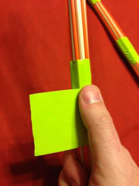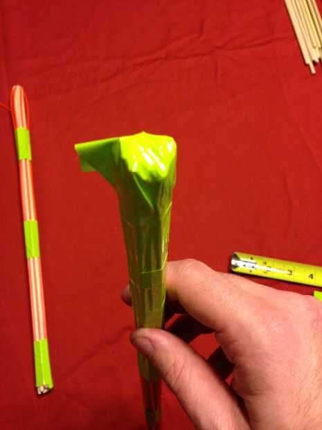 Usando 2,5 pulgadas piezas de cinta, llenar el espacio de la cinta media a la parte inferior con cinta, asegúrese de envolver bien y tratar arrugas como pocos como sea posible. Además, cubrir el fondo con un trozo de cinta. Es más fácil if su cerca de la Plaza, el palo en la Plaza del centro y pasar de un lado a otro.