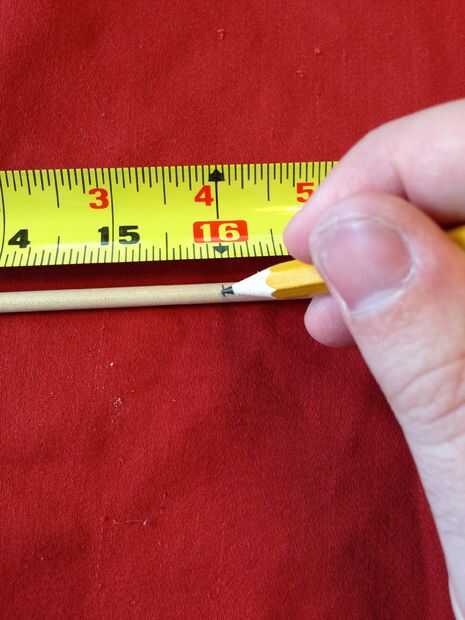 Mide 16 pulgadas de un extremo de la enclavijar y haga una marca. Luego mide 16 pulgadas desde el otro extremo y hacer una segunda marca. Prefiero a medida de los extremos del cortados, esto le da la máxima precisión de al menos dos de los tres pares. Repetir en cada pieza de enclavijar, hasta que tenga dos marcas en cada pieza.