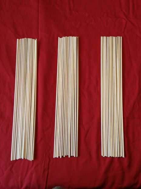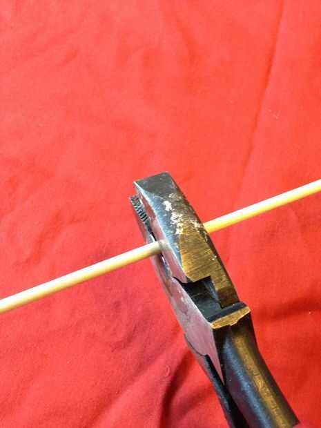 Uso de las marcas creadas en el paso 3, cortar el enclavijar y colocar en tres montones, mantener juntos los extremos similares. Yo prefiero utilizar los alicates para este corte, pero si tienes un mejor sistema, no dude en utilizarlo.