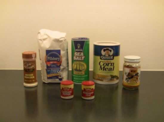 Papel de aluminio capa: harina de maíz harina sal Romero pimienta de Cayena en polvo cebolla comino salsa: dulce en vinagre pimienta Serrano (1) y caliente jalapeño pimientos Habanero salsa de pimienta de Cayena salsa ajo mantequilla azúcar marrón rojo vinagre de vino (con sabor a ajo) salsa de barbacoa dulce bebé Ray