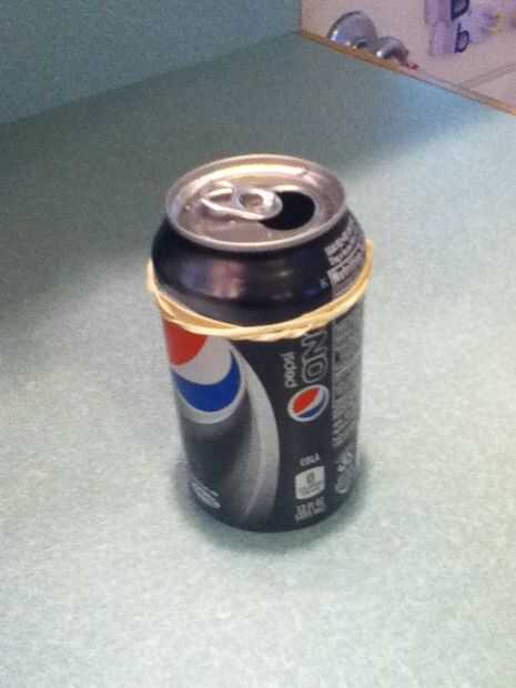 Ahora tenemos que asegurarnos que la botella todavía encaja con las gomas en. Si está demasiado floja, añadir más bandas de goma. Si está demasiado apretado sacar una banda de caucho.