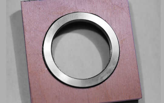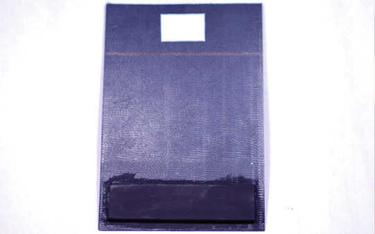 Imagen 5: Cerca de la parte trasera que muestra una pieza de película líder deslizante debajo de la pieza empotrada de plástico.