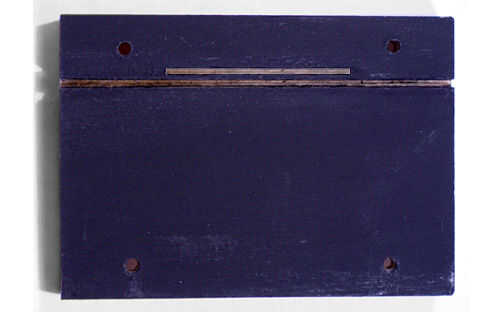 Imagen 2: Vista interior del panel lateral donde se aprecia la ranura para película y la ranura de la cortina del obturador. Tenga en cuenta cómo está cercano el obturador está en la parte trasera de la cámara (plano de la película). Esto hará todo que mucho más sentido en un minuto. La ranura era cortado con una sierra de diente fino, regular mano mano.