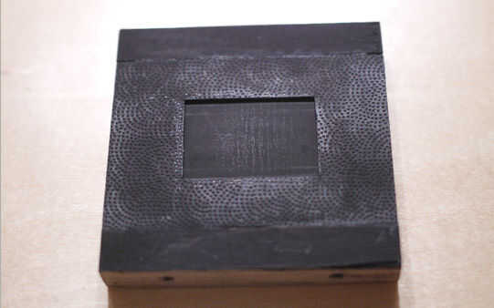 Imagen 3: Los paneles delanteros y traseros miden 3 "x 3" Plaza y el acabado dimensiones exteriores de la cámara están de aproximadamente 4 x 4 x 2,25 pulgadas. El orificio de la lente fue cortado a mano con Sierra de marquetería, perforó un pequeño orificio para deslizar la hoja a través y luego atado a la manija para cortar el agujero. La hendidura para el anillo de montura de la lente fue hecha con un router. Si usted hizo su caja la profundidad correcta, sería capaz de evitar el hueco cortado en conjunto. Que no lo recibi justo porque no tener en cuenta que yo iba a la película de la hendidura en la parte trasera, así que tuve que hacer la distancia por empotrar la lente la misma cantidad. Voy a explicar esto largamente más adelante, pero la versión corta es que la lente tiene que ser una distancia exacta desde el plano de la película para que tres cosas va a suceder, la lente será capaz de concentrarse cerca para arriba, la lente será capaz de enfocar al infinito, y el medidor de distancia de la lente será preciso.
