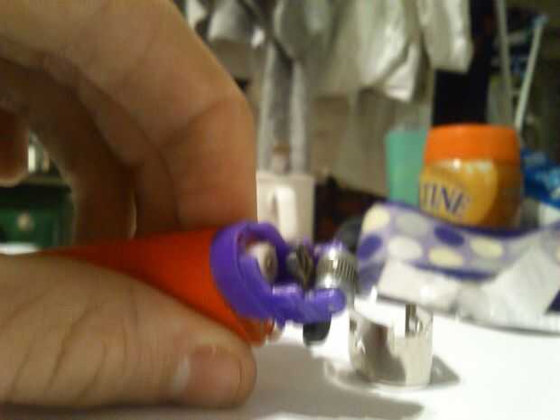 Luego tome el resorte y enróllelo alrededor del encendedor pedernal.
