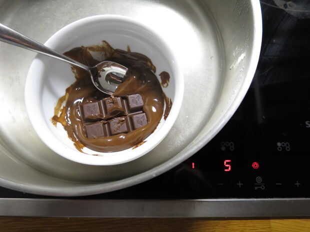 Entonces comencé a calentar el chocolate en baño de agua, hasta que fue totalmente licuado.