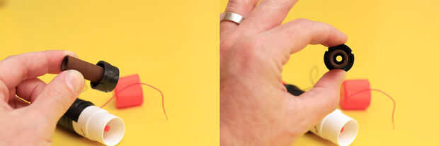 2.) como he mencionado al principio, terminado siendo el elemento perfecto para esta bobina alrededor de un palillo del pegamento. La razón es que se pueden utilizar los palillos del pegamento moviendo el émbolo para sujetar una pieza de metal, que será el elemento de"tuning" para esta referencia. Este acuerdo es una buena manera de simplificar el arreglo que uso EasyTreasure y JoelDude.