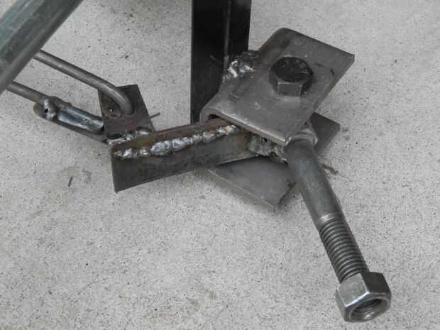 Mayoría de la gente compra su propio piezas para el front-end, pero me siendo frugal que decidí hacer mi propia. Principal con extrañas piezas de acero en suministro de Tractor y de Lowe. Por lo tanto mis husos realizan a medida, sugerimos para comprar algunos porque mía no son tan perfecta como los trabajados a máquina. Tuve que usar un poco de ingeniería Redneck para hacerlos funcionar. Los tirantes de las tiendas son más fuertes que mis barras de acero de 1/4". Al fijar los hechos en casa o tienda compraste husillos Asegúrese de que tener extremadamente bienes soldaduras sobre ellos. Uno de mis husos interrumpió cuando debo pegar un golpe, así que tenga mucho cuidado cuando se suelda en la parte delantera y traseras asambleas en el marco.