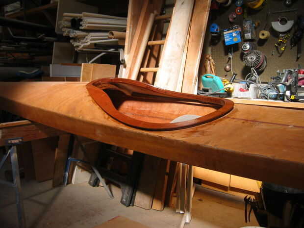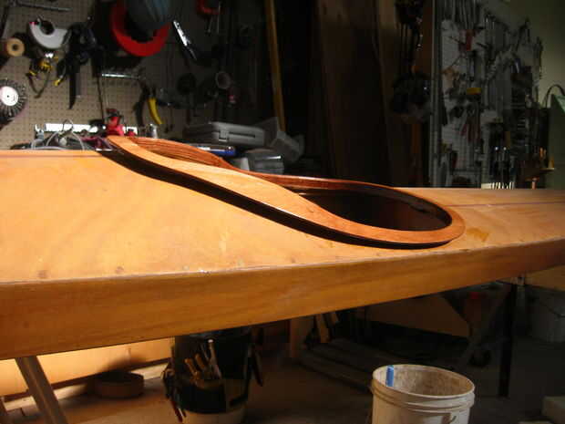 Usted nunca imagino lo que vendría debajo de ése Bosque de abrazaderas. Unas horas después de pegar, vienen de las abrazaderas y después de un poco de lijado y una capa de epoxy, Aquí está el anillo de acabado de la cabina. Oohh! Ahhh!