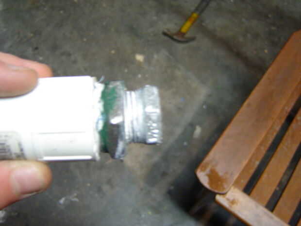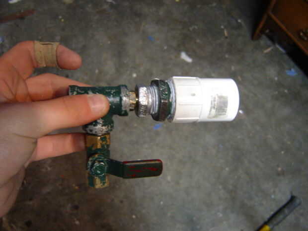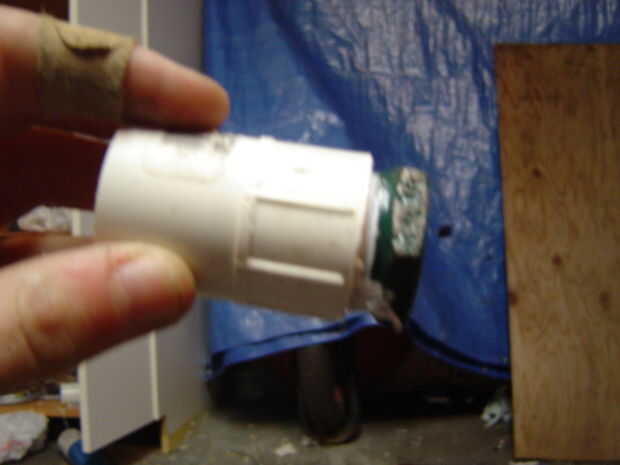 Tomar tus 3/4 en adaptor(pvc) mujer y sus 3/4 del hilo de rosca en 1/2 en buje en él. Asegúrese de no apretar demasiado aquí, no quiere romper el pvc.