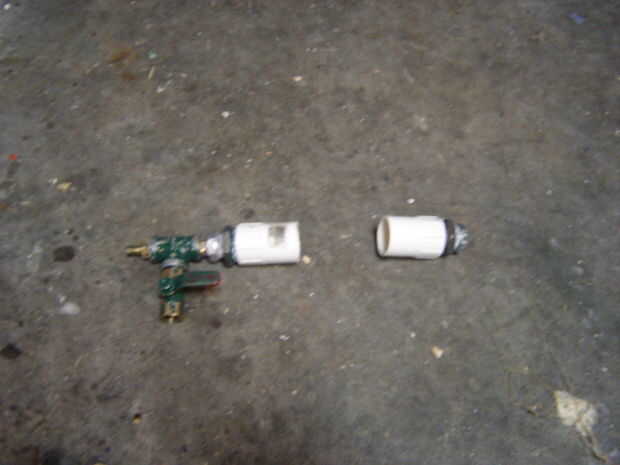 Y repetir lo que hizo con su primer adaptador hembra con el segundo adaptador hembra. Luego con el segundo adaptador hembra rosca 1/4 de pezón en el 1/2 en 1/4 en buje. Continuación del hilo de rosca de 1/4 en t al. Hilo de rosca de 1/4 de pezón a un lado de la t y una válvula de schrader al otro lado. Continuación del hilo de rosca 1/4 en válvula de bola 1/4 de pezón.
