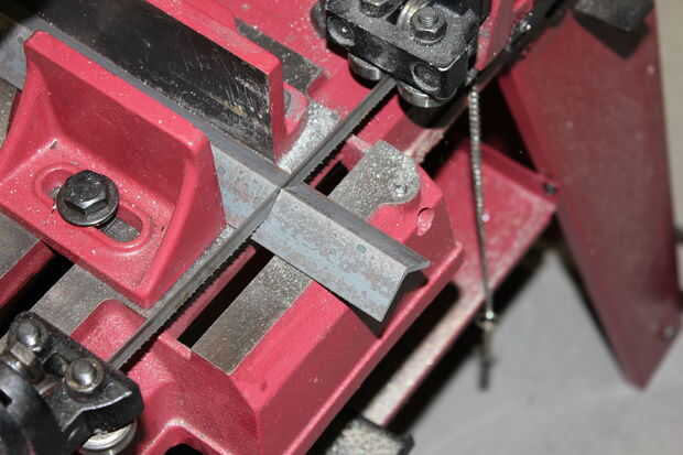 Lo primero que tienes que hacer es cortar el acero. Usé mi sierra de banda de 4 x 6 para hacer esto.