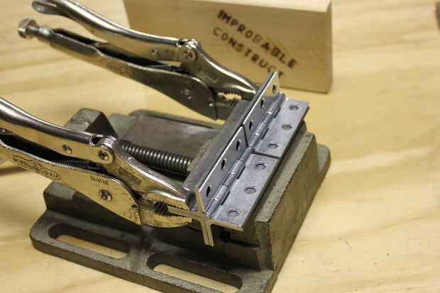Las bisagras deben quedar firmemente en la esquina formada por las tres partes de hierro de ángulo.