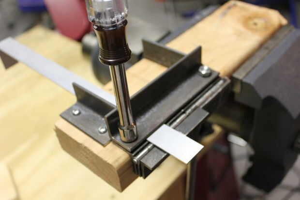 No apriete demasiado el lado vacío.  El ángulo debe quedar planas sobre la pieza que vas a doblar.