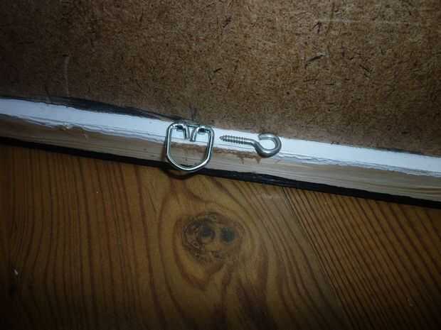En los lados internos en la parte trasera 10" de la parte superior del tornillo en los ganchos (o D-ganchos).  Aquí es donde tuve que hacer de la reconstrucción y los ganchos D terminaron accesorio como este (última foto).
